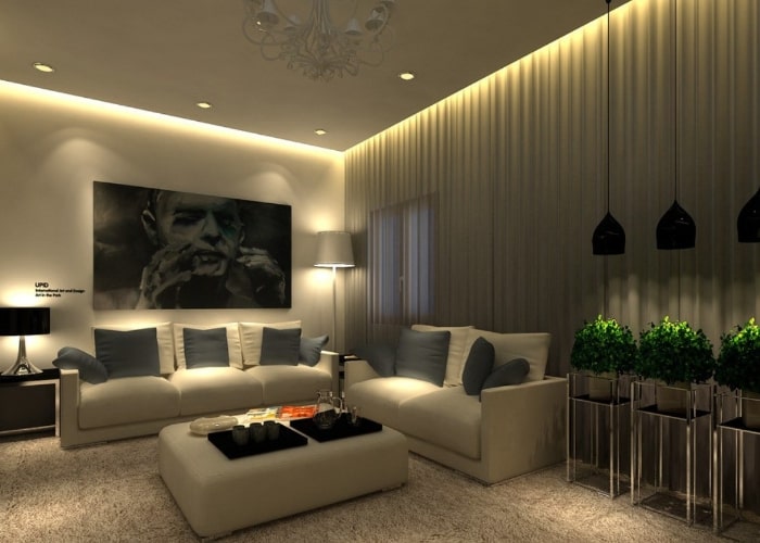 - مبلمان ساده و کمجزئیات باعث میشود سقف و گچبری بیشتر دیده شود.